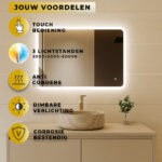 Badkamer Spiegel Milo 80x60CM | LED Verlichting Voorzijde | Condensvrij | Dimbaar