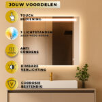 De verlichting is egaal dankzij de geïntegreerde diffuser. De spiegel is kopervrij en roestvrij, en gaat daardoor jarenlang mee. Bedien alles eenvoudig via de touchknop aan de voorzijde.